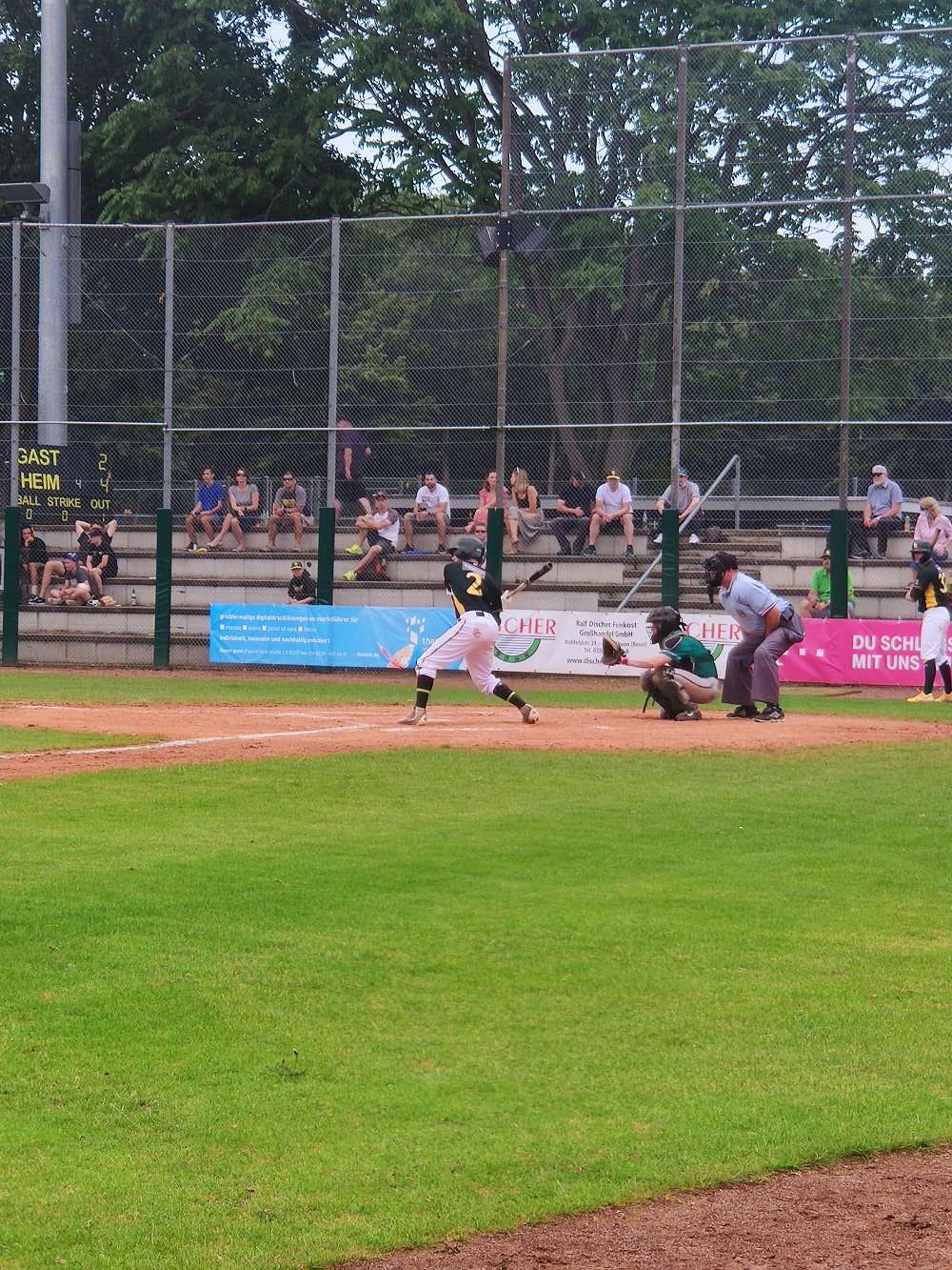 Die Stingrays-Offensive, angeführt durch Basehits von Maxi Griesbach und Jannik Zeitschner, hielt anfangs gut mit und erzielte im ersten Durchgang direkt 2 Runs durch Schläge von Joshua Busse und Ozzy Hammouda.