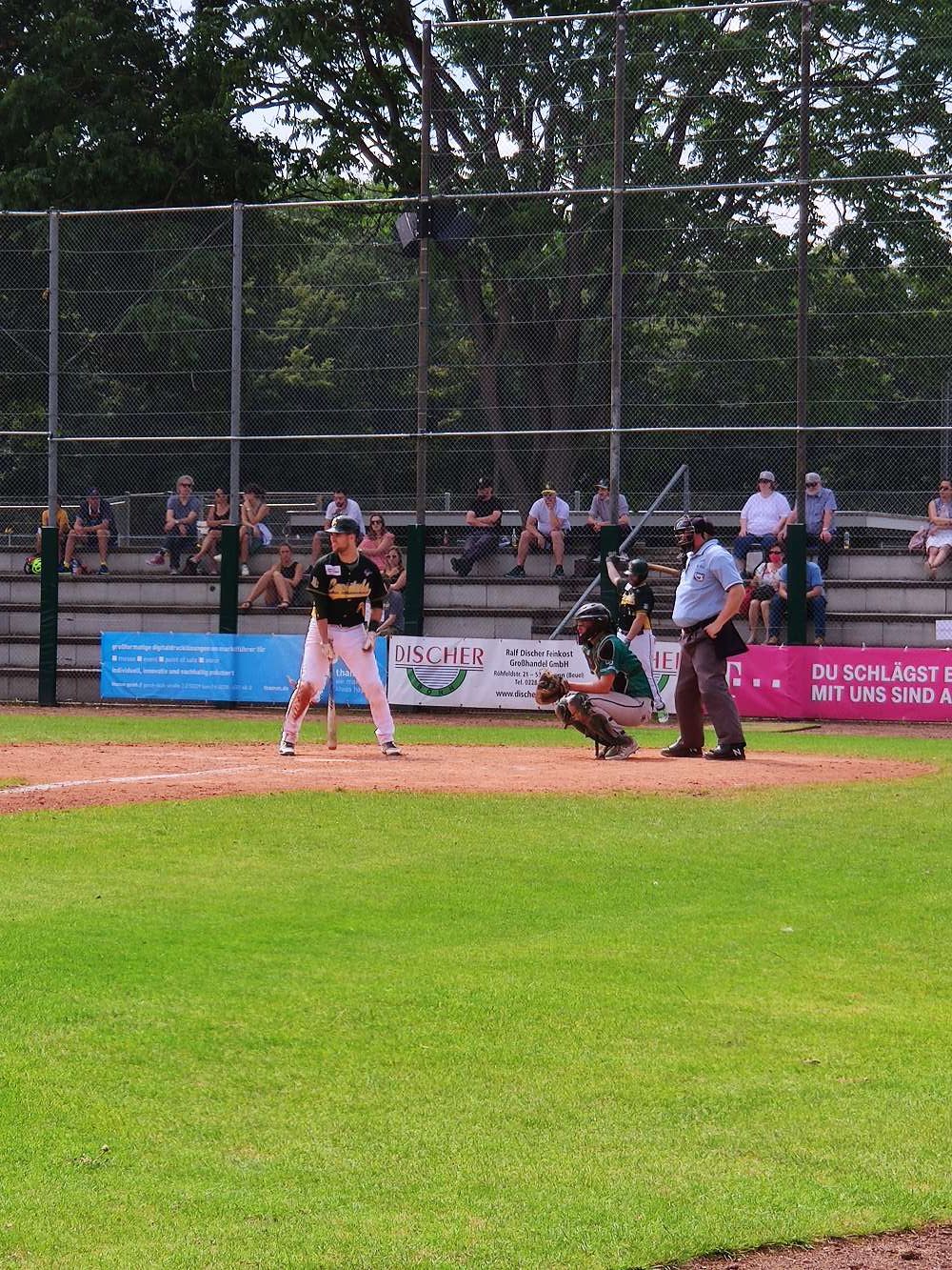 Für Bonn begann als Pitcher Philip Racek, der noch im vergangenen Jahr bei der EM der Herren im Einsatz für die Nationalmannschaft war. Er machte kurzen Prozess mit den Angriffsbemühungen der Stingrays, einzig Max Ortmann gelang ein Hit gegen den starken Pitcher.